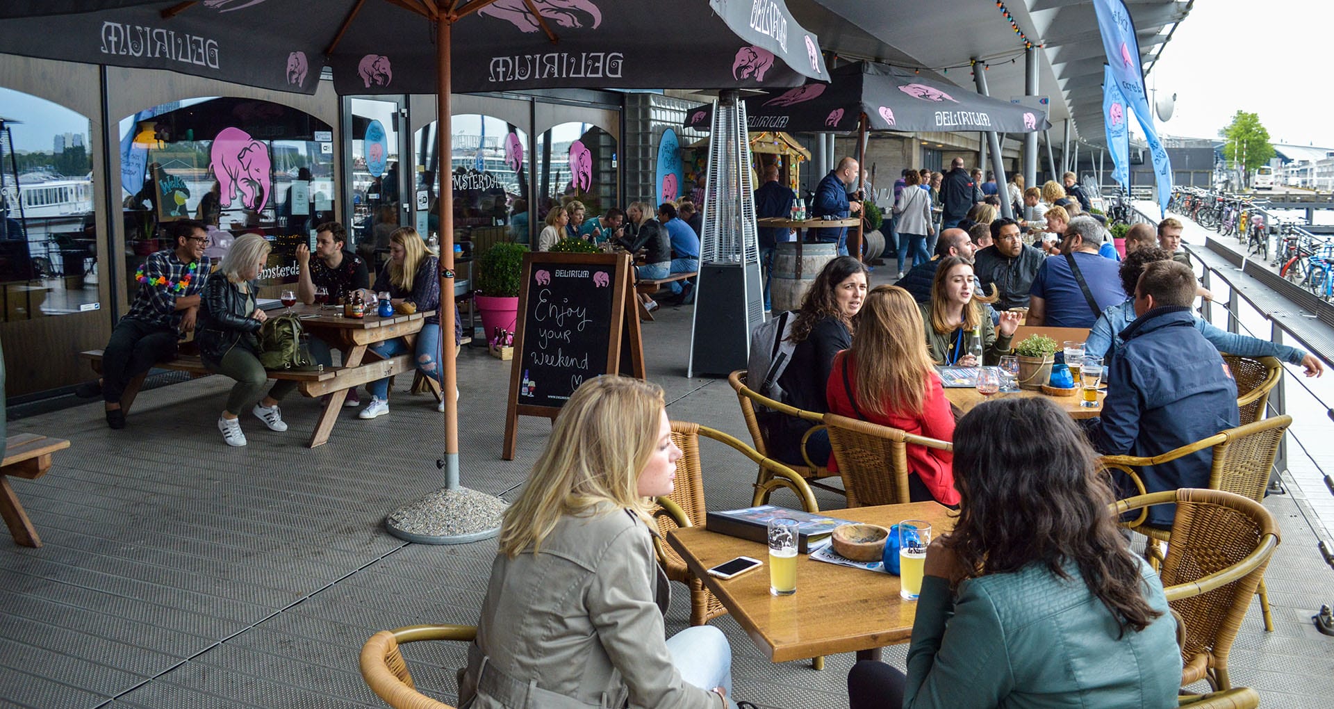 Een schitterende locatie aan het IJ met een groot terras en drie gescheiden ruimtes die privé af te huren zijn voor privé evenementen.
